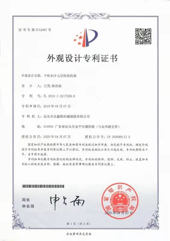 专利-下吹水冷七层机组机架